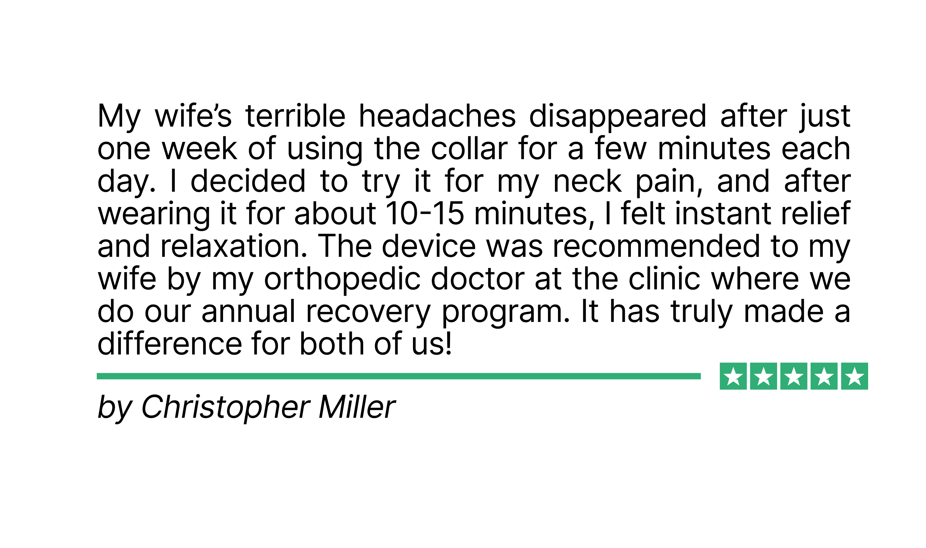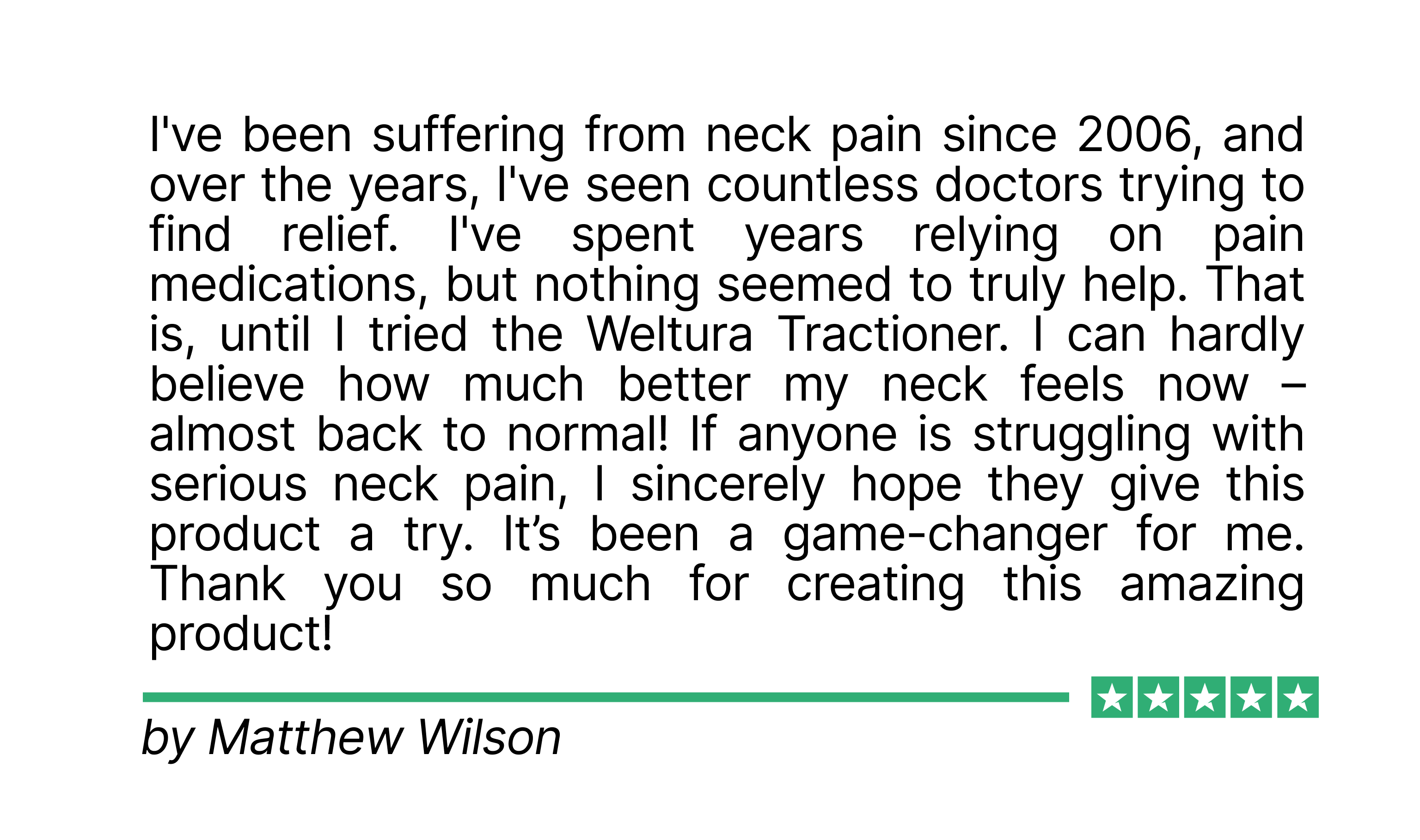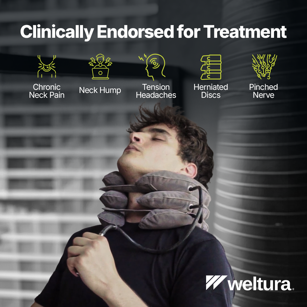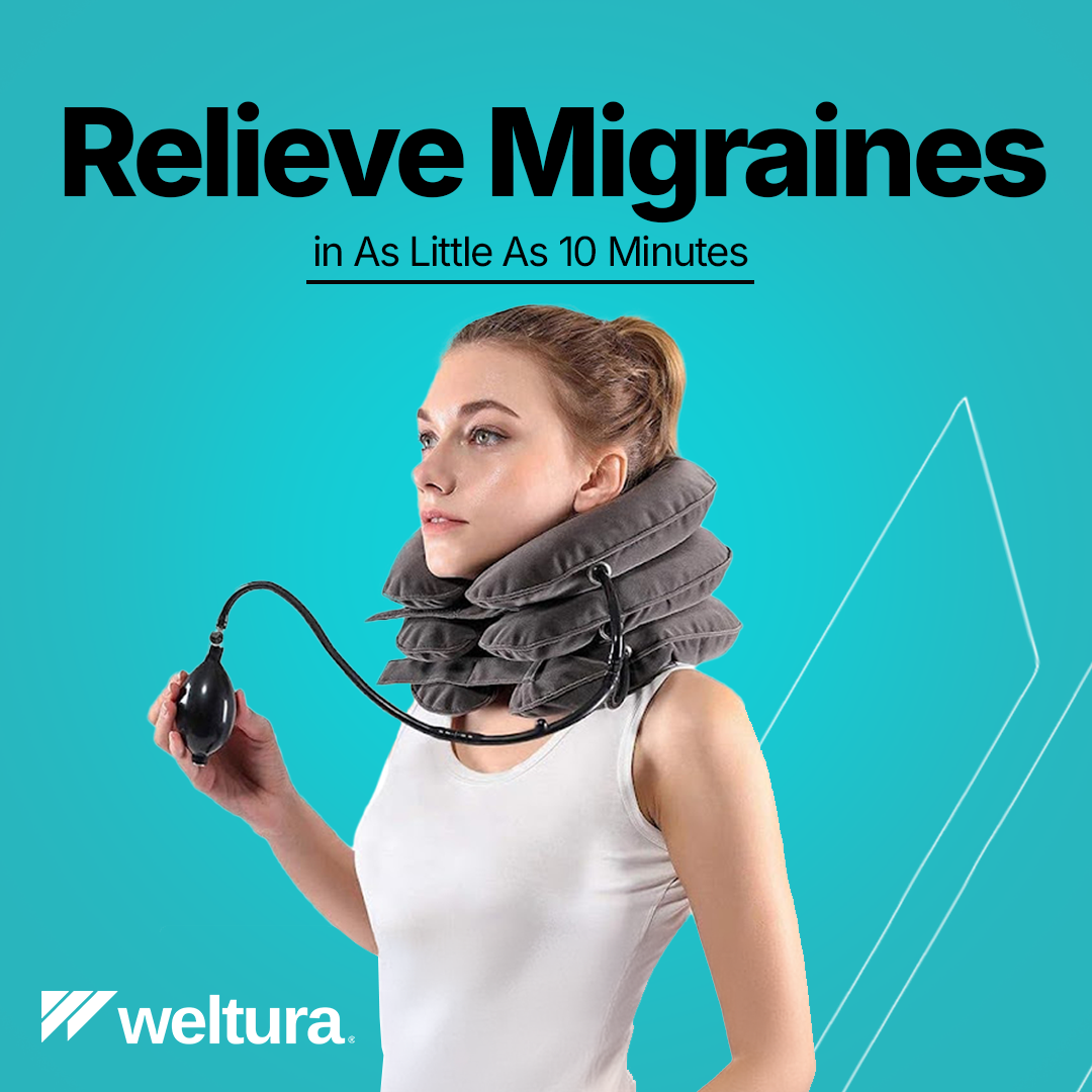 Experience migraine relief in just 10 minutes with the Weltura Tractioner, which gently decompresses the neck to reduce tension and improve blood flow.